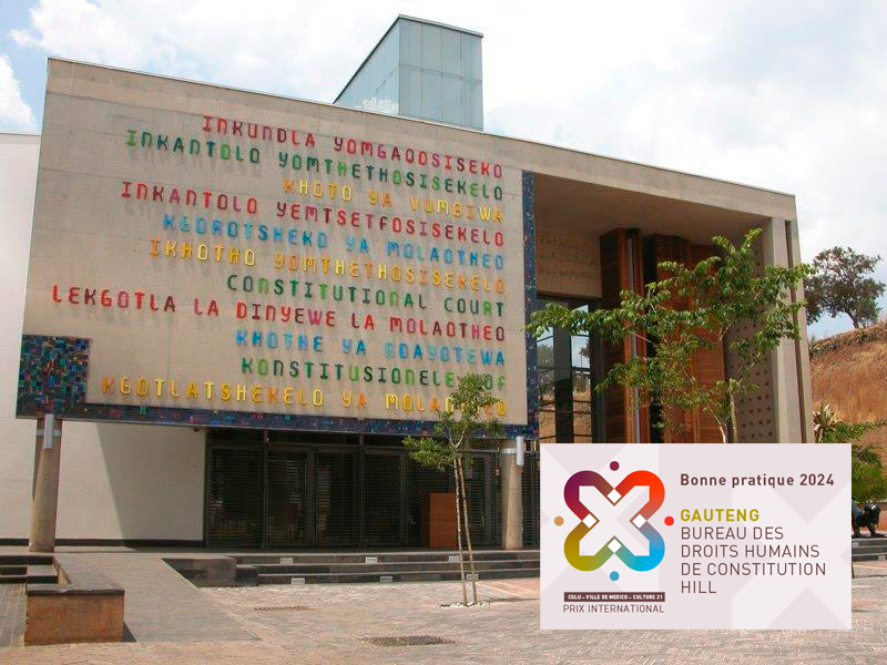 Gauteng était candidat à la sixième édition du “Prix international CGLU Mexico - Culture 21” (novembre 2023 - mars 2024). Le jury du prix a rédigé son rapport final en juin 2024 et a demandé à la Commission de la culture de promouvoir ce projet comme l’une des bonnes pratiques à mettre en oeuvre dans le cadre de l’Agenda 21 de la culture.