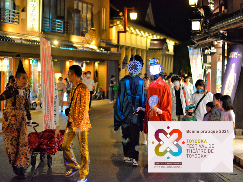 El Festival de Teatro de Toyooka, un proyecto líder de “desarrollo comunitario urbano en profundidad a través de las artes escénicas”, celebró su primera edición en septiembre de 2020. Con la misión de realzar el valor de la ciudad y crear un espacio para la expresión diversa y abierta, ha establecido un programa de representaciones de obras de artes escénicas. El festival se celebra como un festival internacional de teatro alternativo que permite la participación de diversos artistas japoneses y extranjeros y promueve el desarrollo sostenible de la comunidad, la revitalización de la economía local y la creación de nuevos servicios. Sus temáticas son: diálogo, solidaridad y evolución.